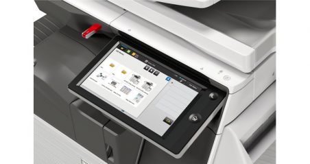 A tiltable 10.1” colour LCD touchscreen provides the ability to drag and drop frequently used icons for simple customisation of the home screen and communication lamps that show the MFP’s status. Everyday operation is simple and intuitive; just touch, tap, pinch and spread or swipe for instant access to every feature, function and setting including an advanced preview feature.